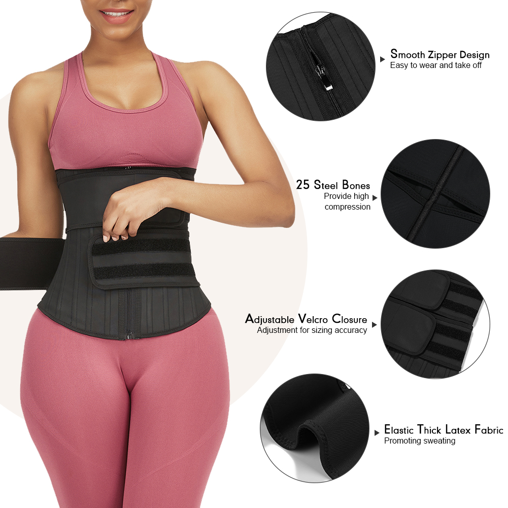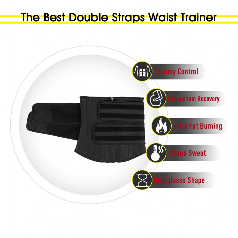 This Black 25 Steel Stoned Double Belt Latex Waist Trainer For Sale is easy to use, and totally adjustable for a perfect fit every time, even as you lose weight.
