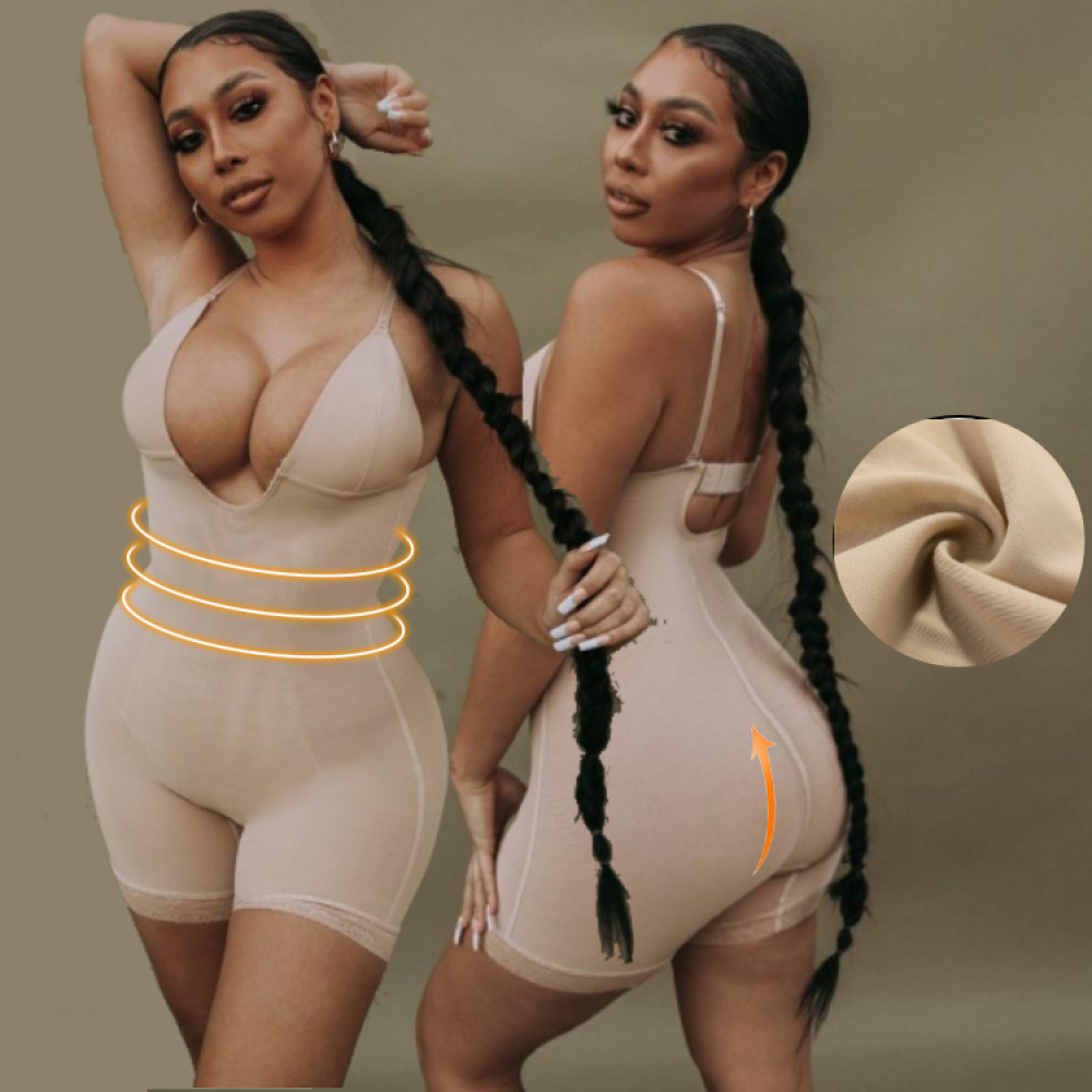 The Black Full Body Shaper Wired Plunge Collar Natural Shaping provides just a tad of support around your tummy, love handles and thighs, smoothing everything out under your outfits.
