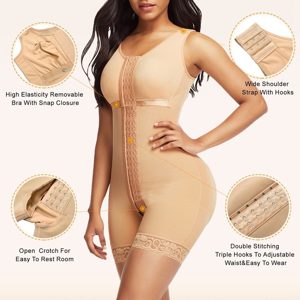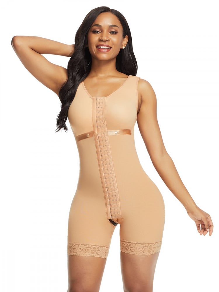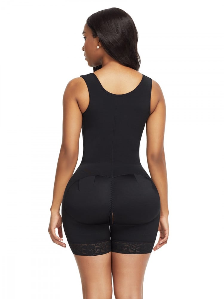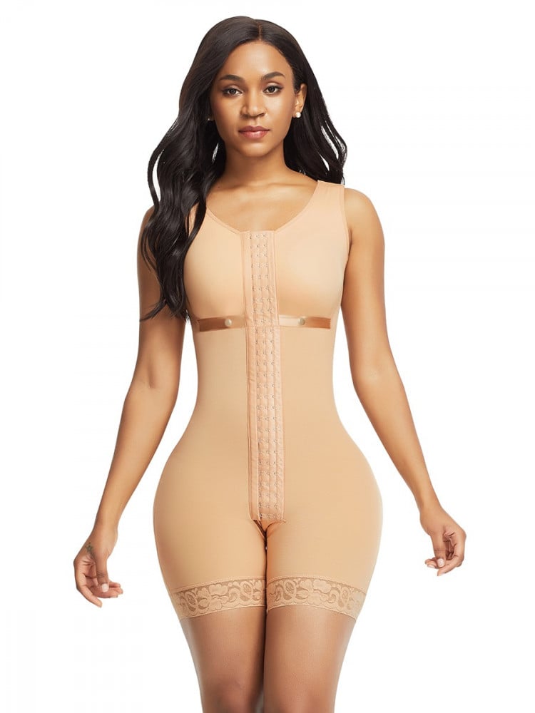 The Skin and black Color Wide Straps Crotchless Full Bodyshaper Hooks For Weight Loss comfortable compression to tone the tummy and hips, and give you a perky rear view.
