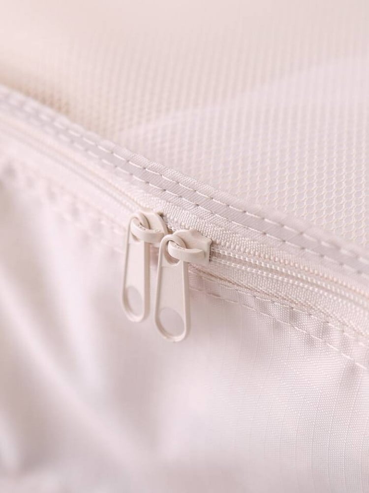 - بمجرد وضع المنتجات، تأكد من أن السوستة مضغوطة تمامًا، بحيث لا تسقط المنتجات وتتلف مع جميع الأشياء الأخرى